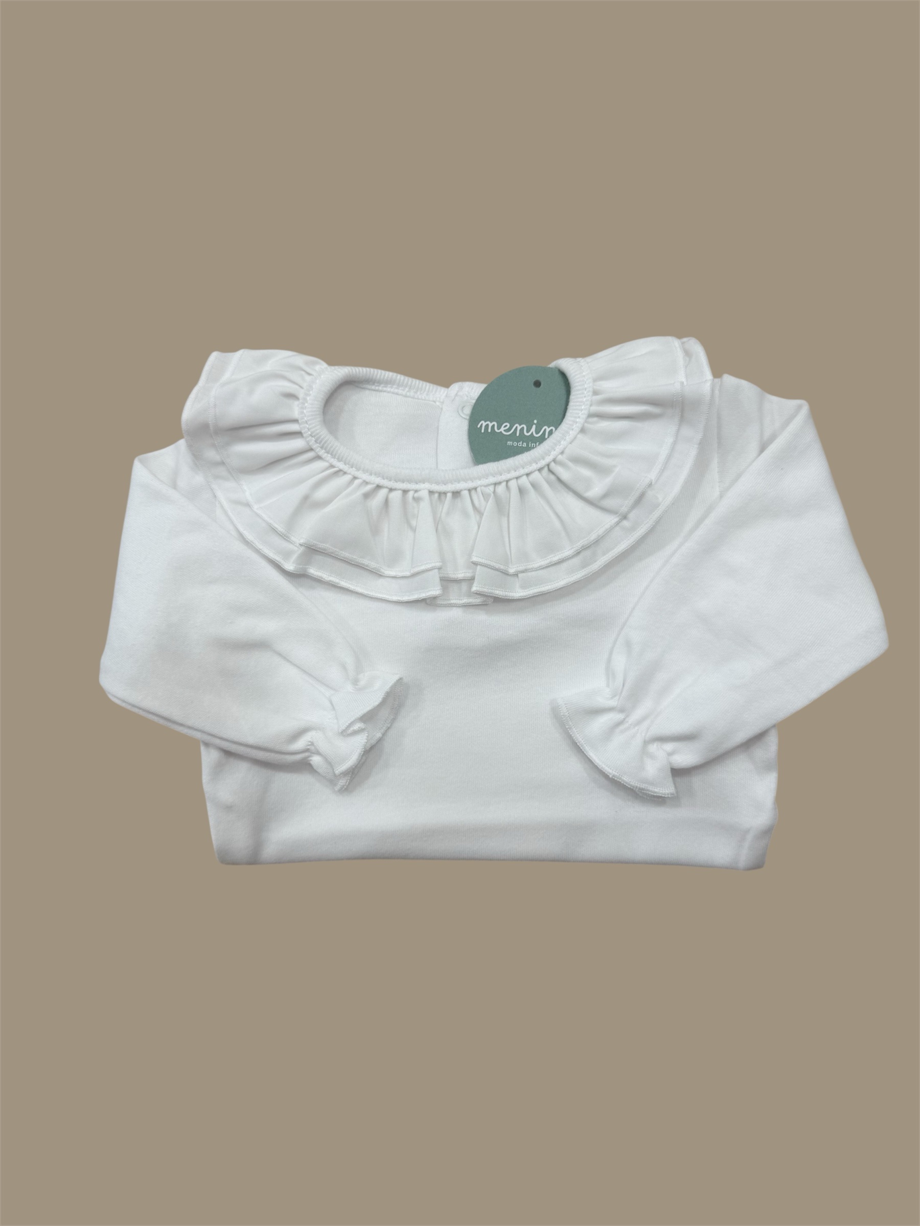 Body manga larga de Cuello doble volante en color blanco.