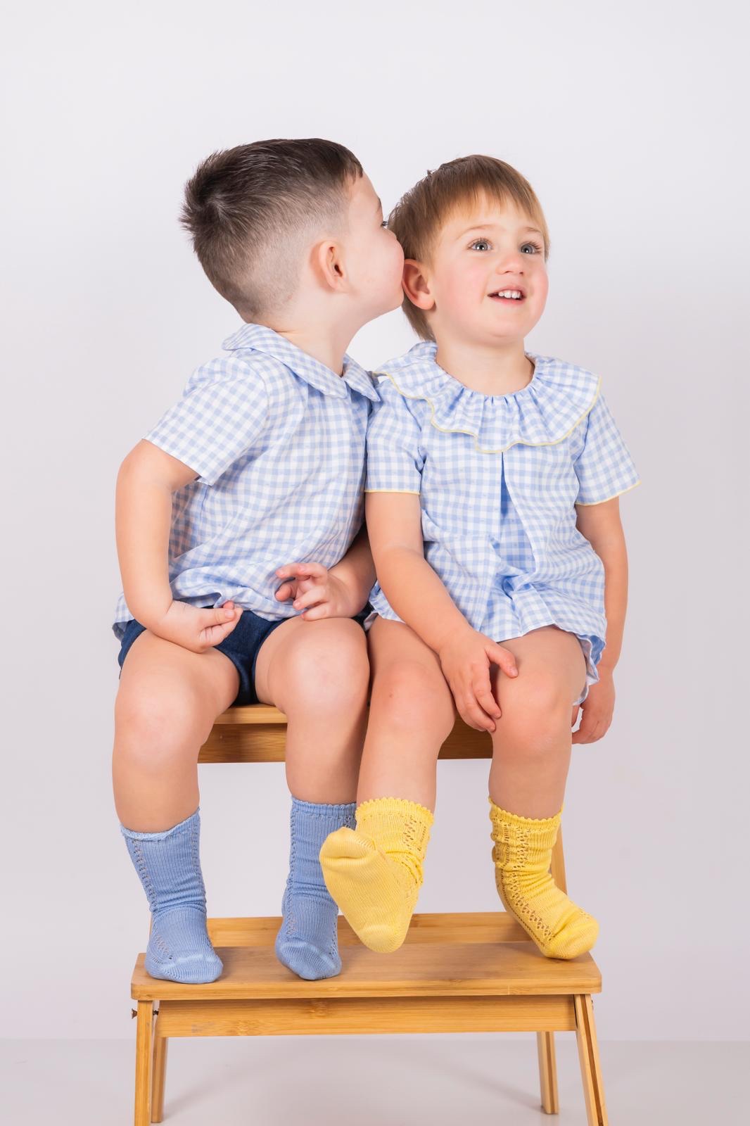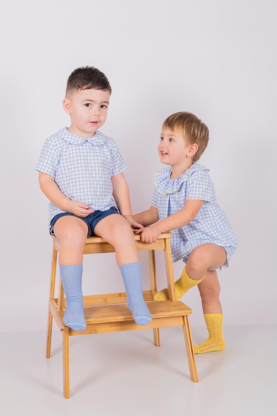 Conjunto de Vichy Plumeti rulada en color amarillo.