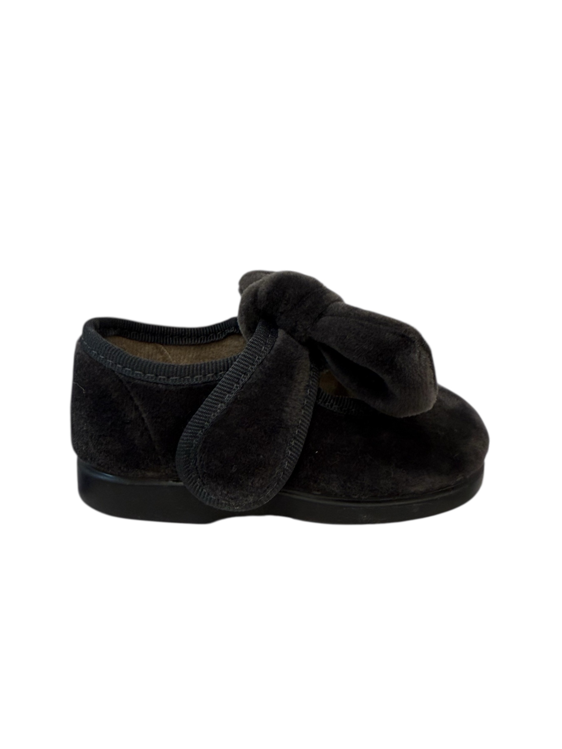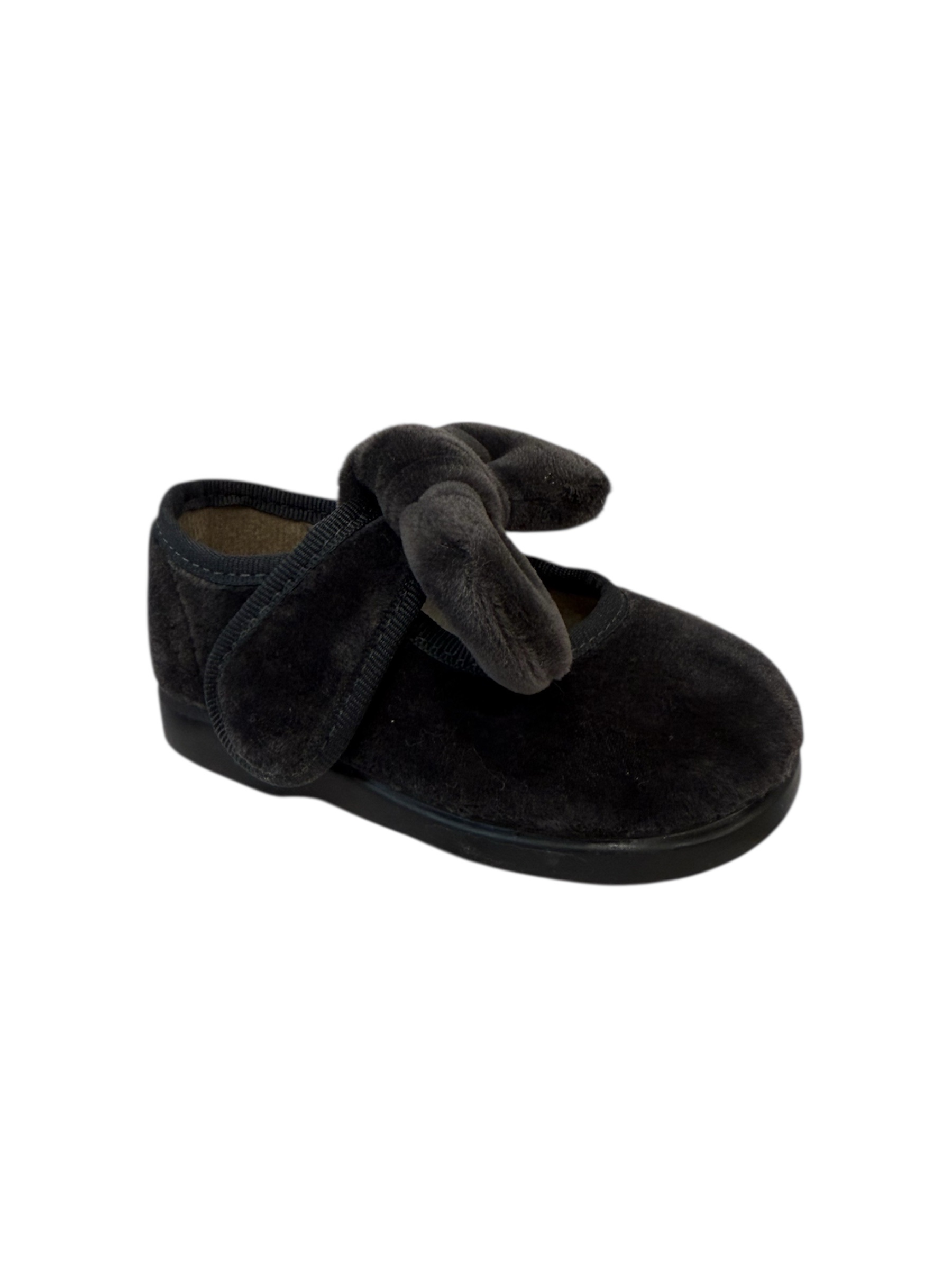 Merceditas terciopelo en color gris, con lazo y cierre de Velcro.
